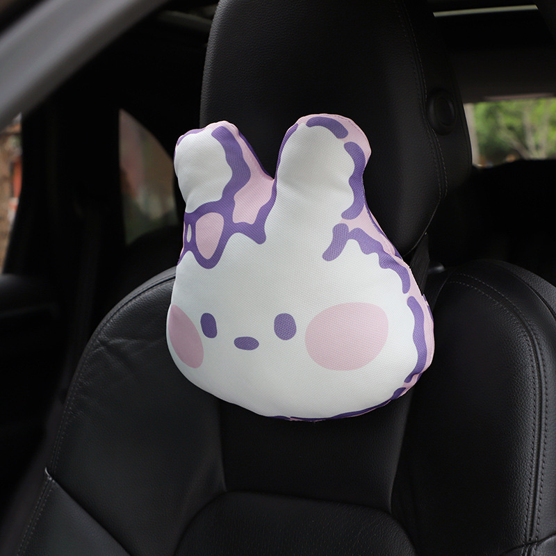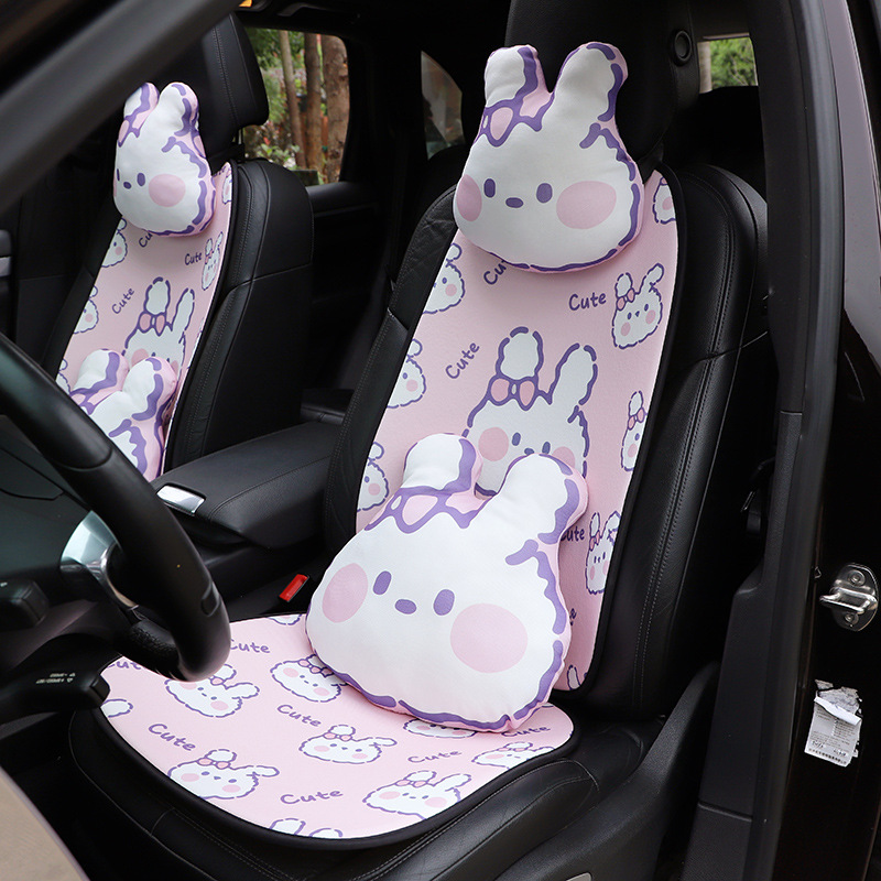 Car Cartoon Headrest,Cute Bunny Ice Silk Car Seat,Neck Pillow,Cushion,Comfortable And Breathable Car Supplies