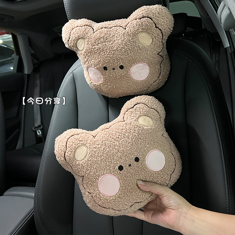 Cartoon Car Headrest Plush Bear Car Seat Neck Pillow Cushion Cute And Comfortable Car Interior Headrest
