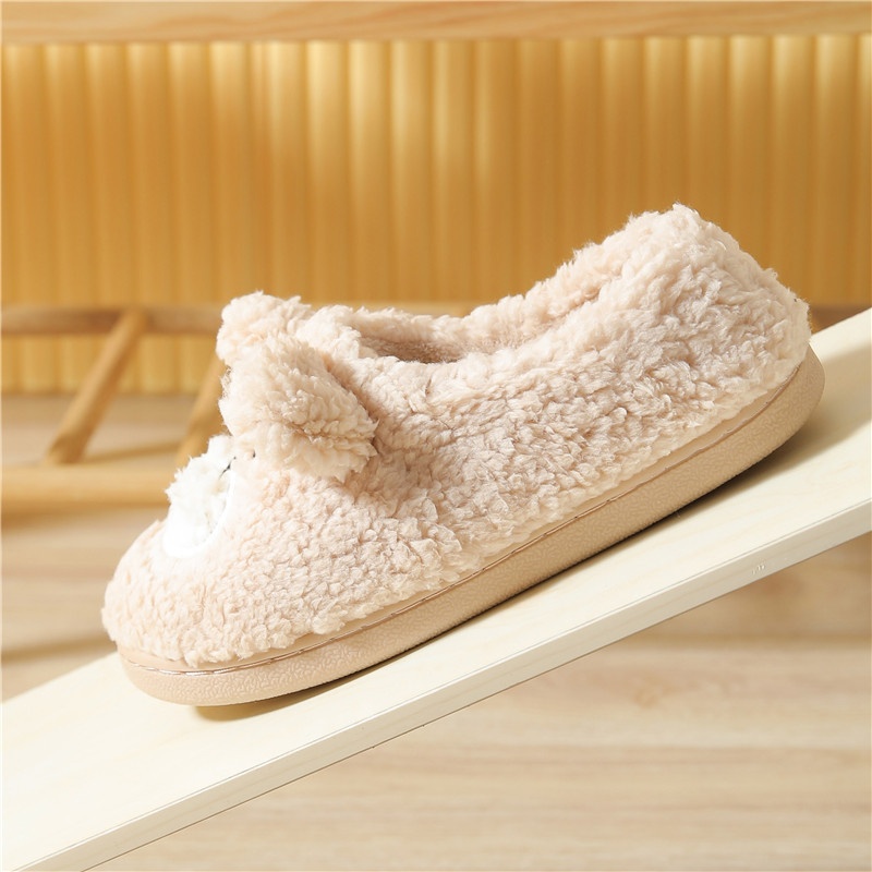Cover Heel Cotton Slippers For Women Cute Winter Indoor Home Non-slip Bear Plush Couple Cartoon Slippers Winter