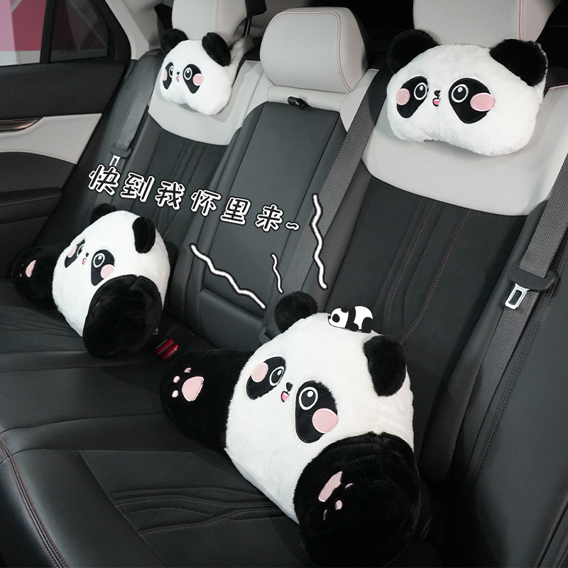 Car Headrest And Waistrest,Cartoon Cute Panda,Comfortable And Soft Car Pillow,Universal Car Neck Pillow For All Seasons