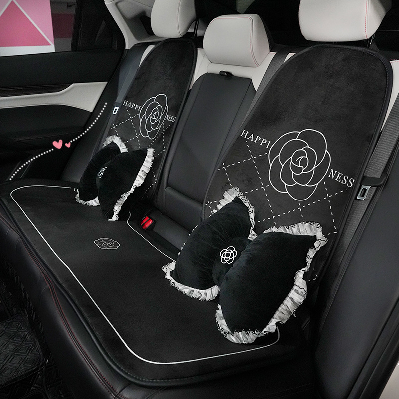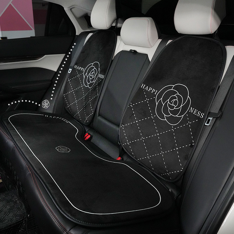 Classic Camellia Car Seat Cushion,Short Plush Printed Warm Car Seat Cushion,Light Luxury Goddess Car Seat Cushion