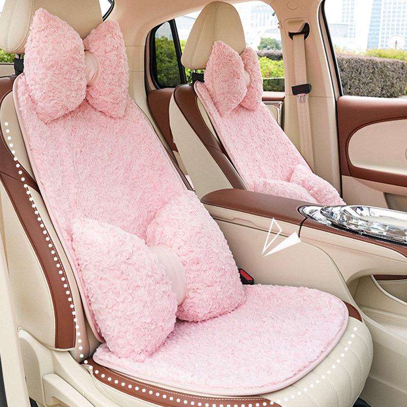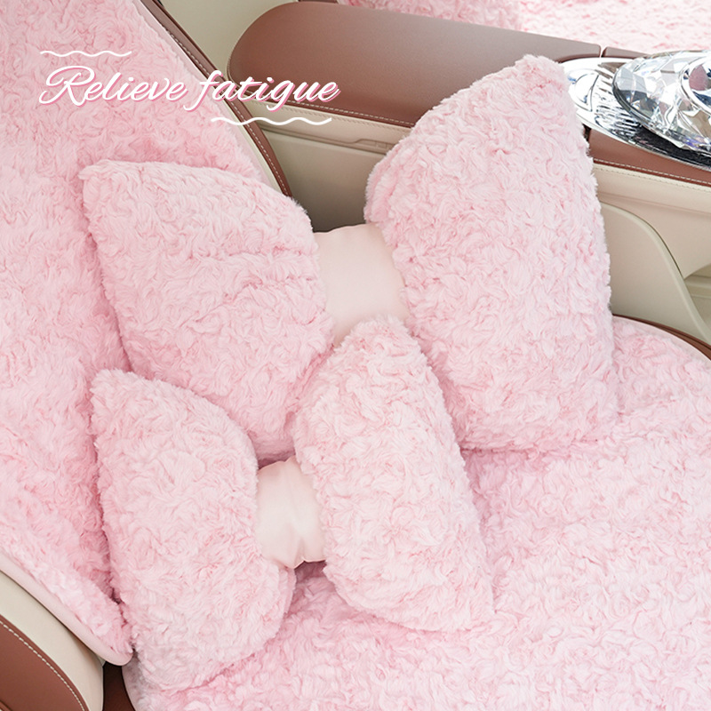 Winter Car Headrest,Rabbit Fur Brushed Rose Flower Car Neck Pillow,Stylish And Simple Car Lumbar Support For Women