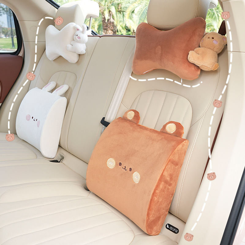 Cartoon Car Headrest Neck Pillow Memory Foam Bear Car Soft Cushion Four Seasons Comfortable Car Cushion