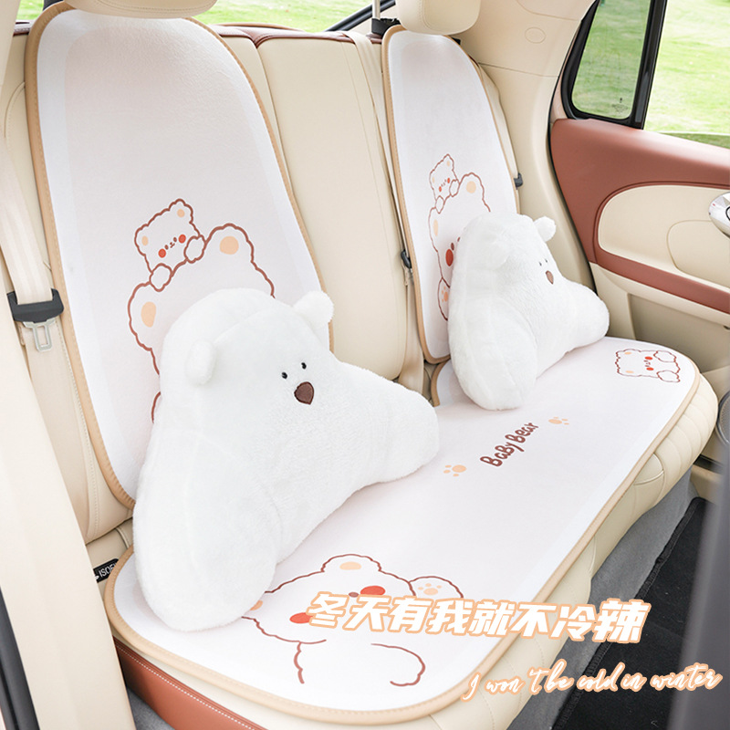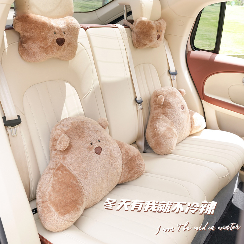 Arctic Velvet Arm Bear Car Headrest Neck Pillow Cute Cartoon Car Lumbar Pad All Seasons Car Lumbar Support
