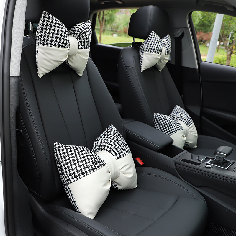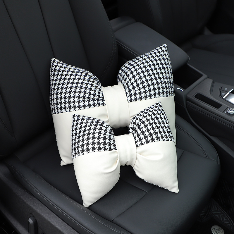 Houndstooth Car Headrest And Neck Pillow Jacquard Breathable And Comfortable Car Seat Pillow Neck Pillow Car Interior Supplies