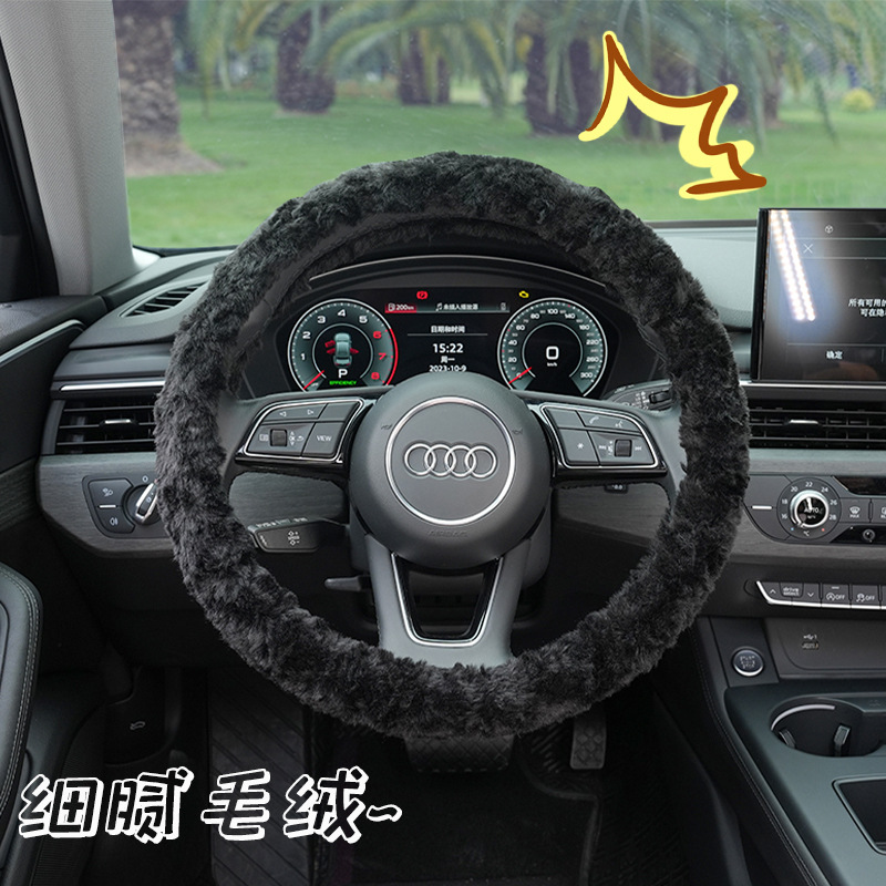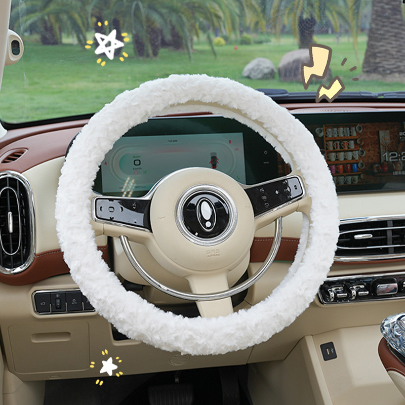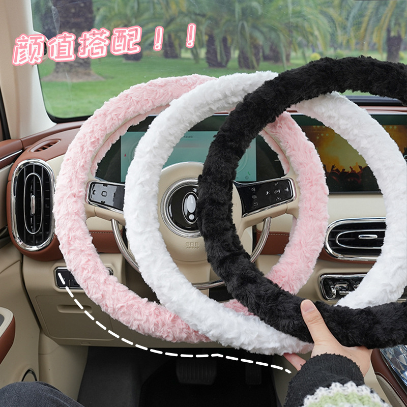 Winter Car Steering Wheel Cover Rabbit Fur Brushed Rose Flower Warm Car Handlebar Cover Non-slip Hand Warmer Steering Wheel Cover