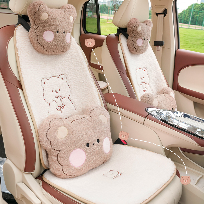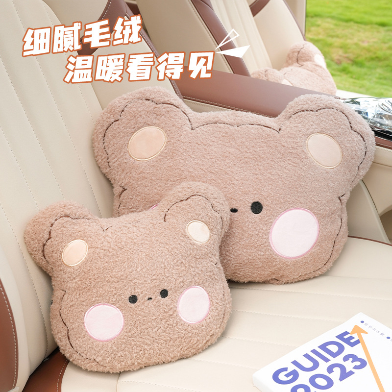 Steam Velvet Bear Car Headrest Neck Pillow Cute Cartoon Car Comfort Cushion Four Seasons Universal Car Lumbar Support
