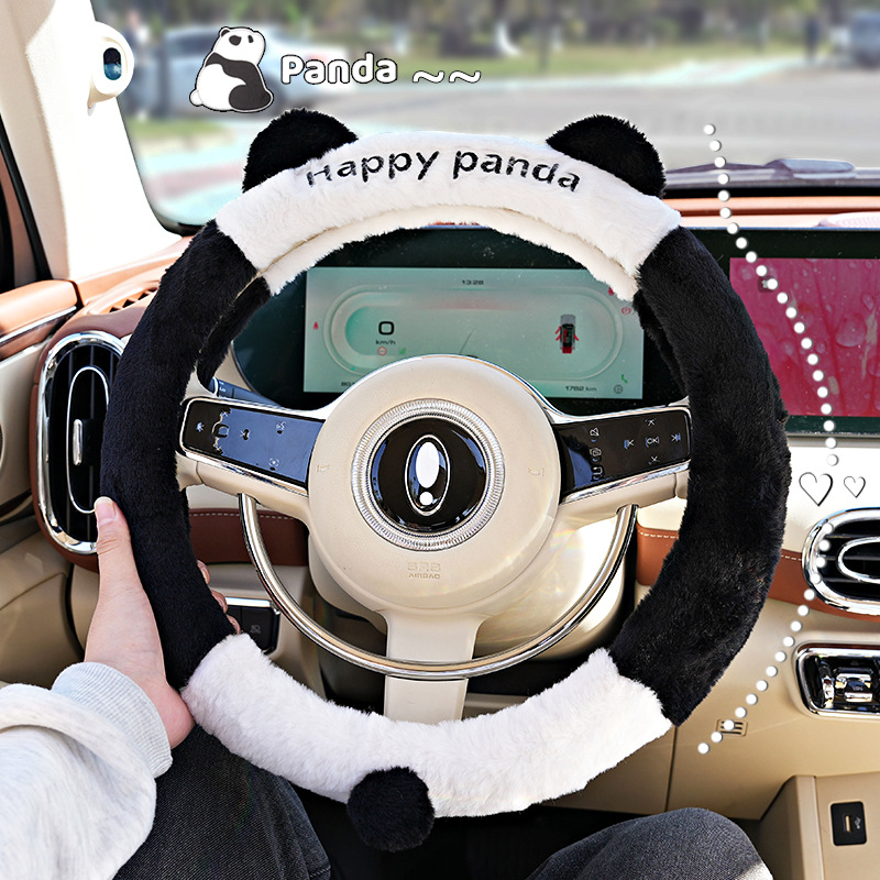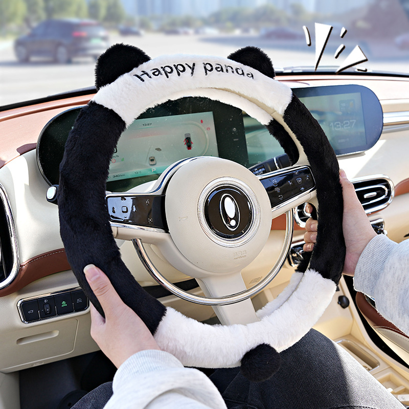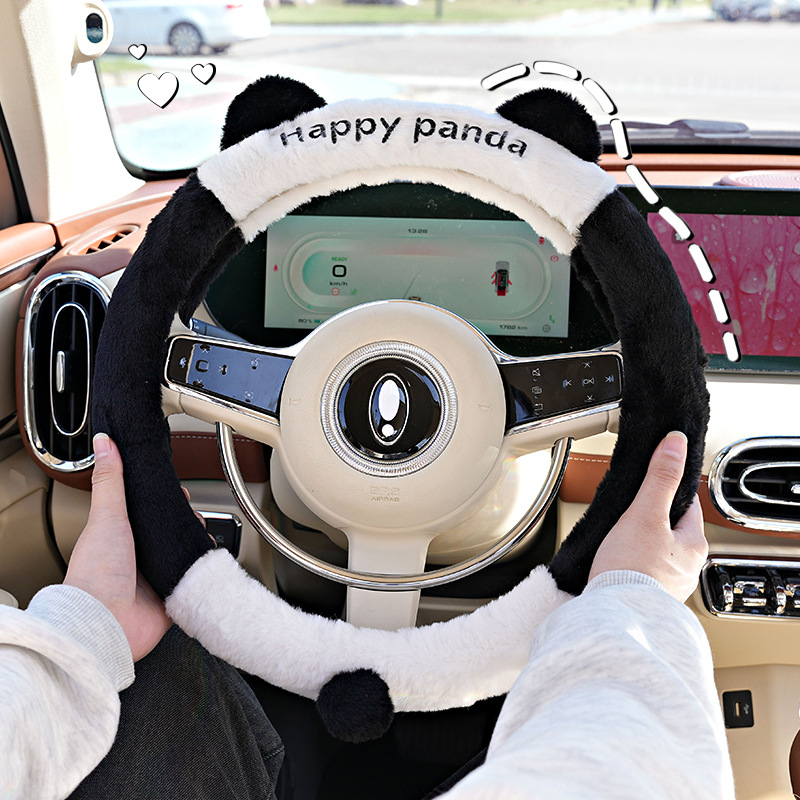 Cute Cartoon Car Steering Wheel Cover Panda Ears Steering Wheel Cover Plush Anti-Slip Comfortable Car Cover