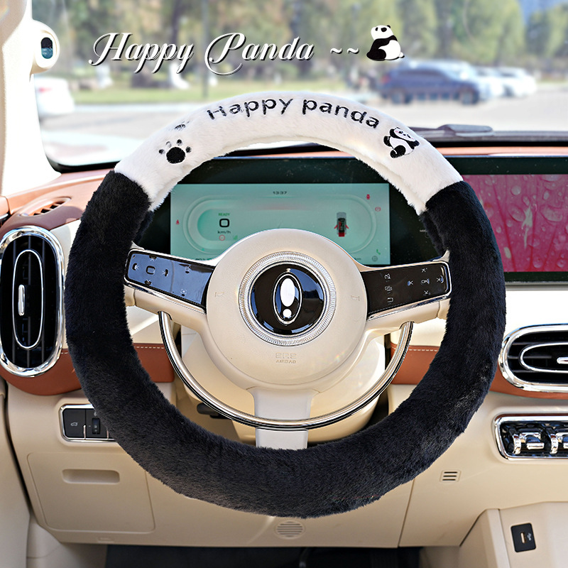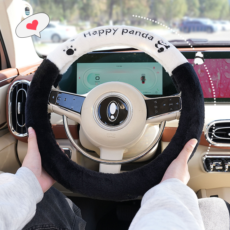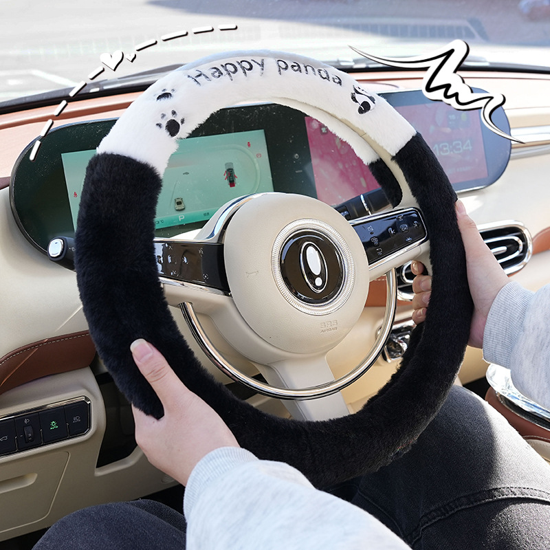 Winter Cartoon Car Steering Wheel Cover Cute Plush Comfortable Car Handle Cover Simple Splicing Car Handle Cover