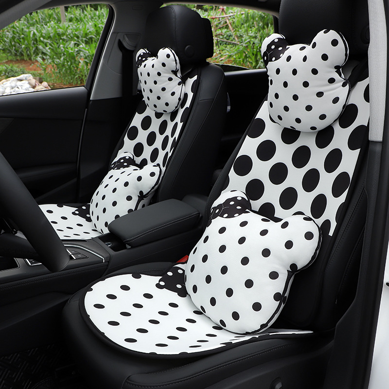 Car Cartoon Seat Cushion Ice Silk Polka Dot Bear Car Seat Breathable Seat Cushion Four Seasons Universal Car Interior Supplies