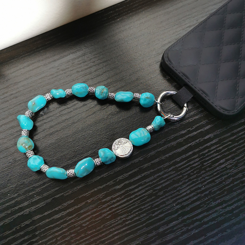 Ethnic Style Irregular Imitation Turquoise Beaded Mobile Phone Chain Crossbody Halter Hand Carry Multi-purpose Mobile Phone Pendant