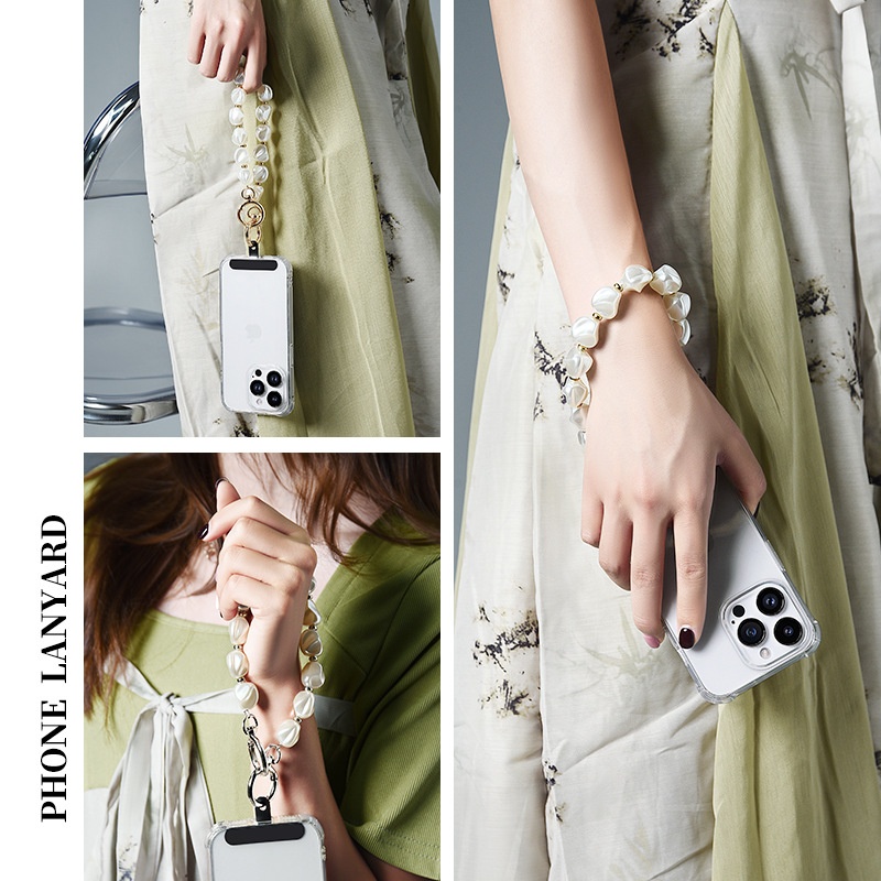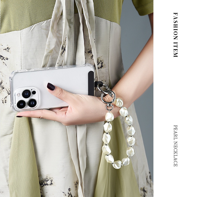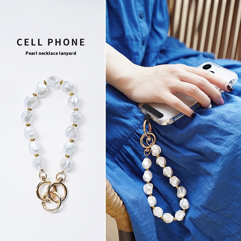 Mobile Phone Short Lanyard Wrist Chain With Clip Pearl Bead Pendant Fashion Portable Chain Anti-lost