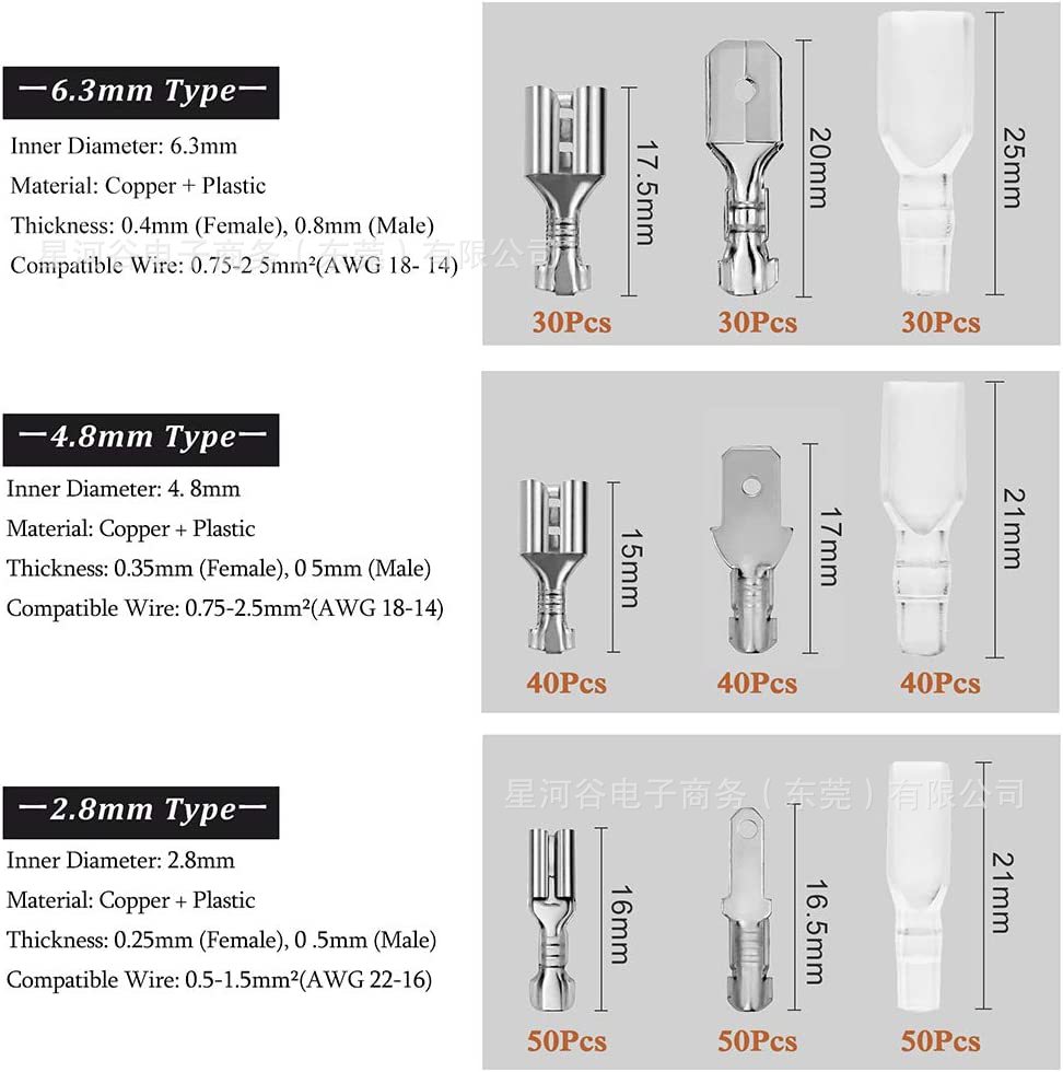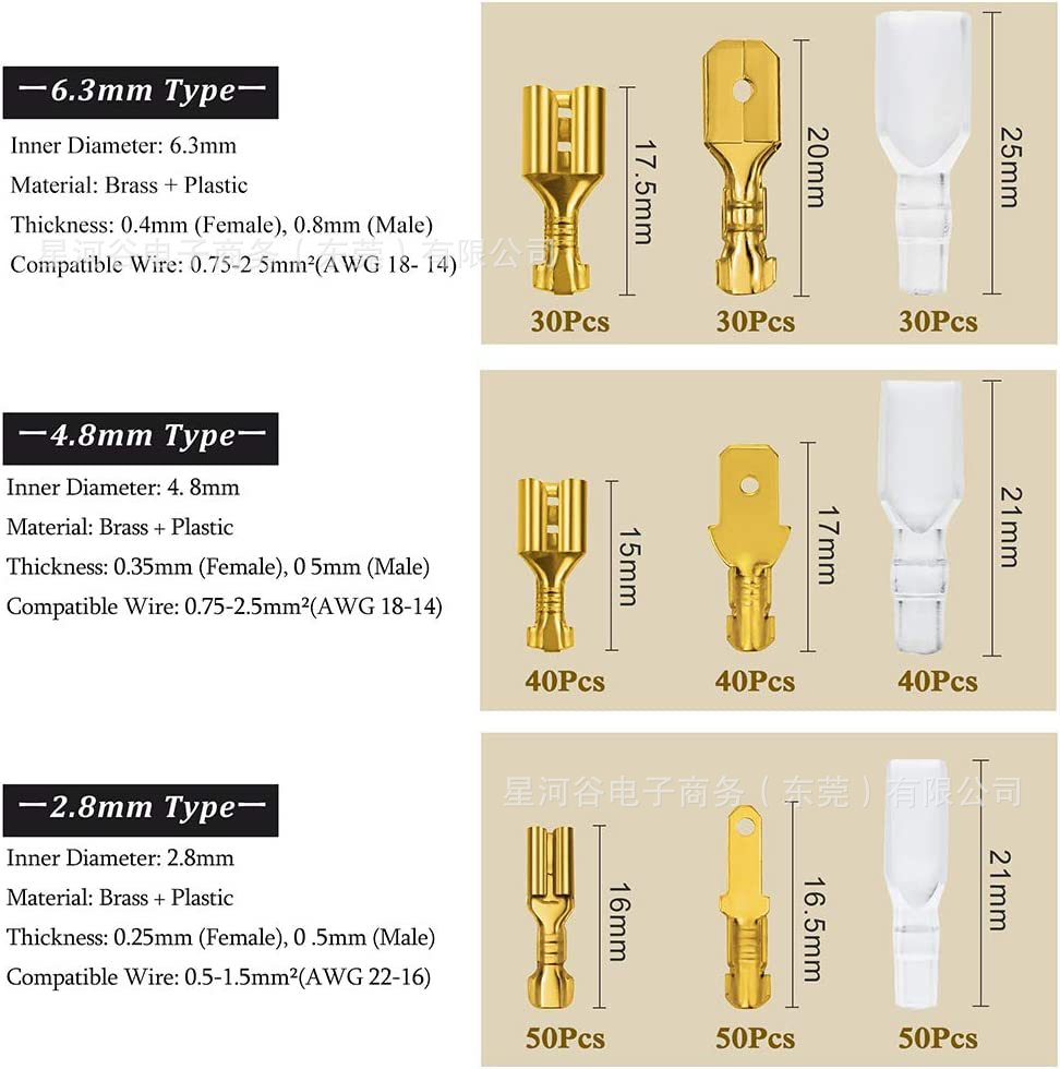 480pcs Boxed Spring Blade Terminal Copper Tinned Bare Terminal Spring Gold Withulation Protection