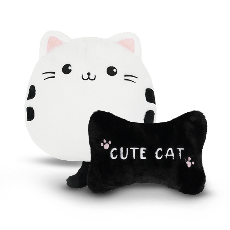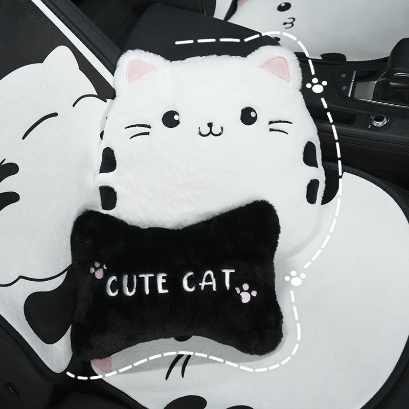 Black And White Cat Car Headrest Neck Pillow Cute Rabbit Fur Car Soft Cushion Four Seasons Car Cushion