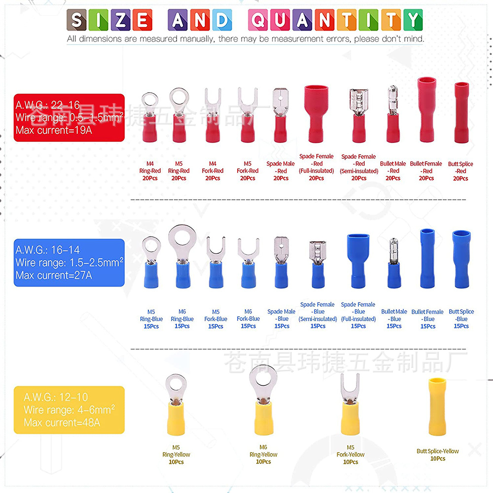 390pcs Cold-pressed Terminal Box Boxed Pre-ulated Cold-pressed Terminal Waterproof Terminal Block Combination Set