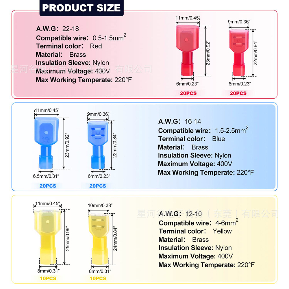 Of100 PCSNylon Fullyulated Terminal Male And Female Quick Docking Spring Blade Cold-pressed Terminal Blocks