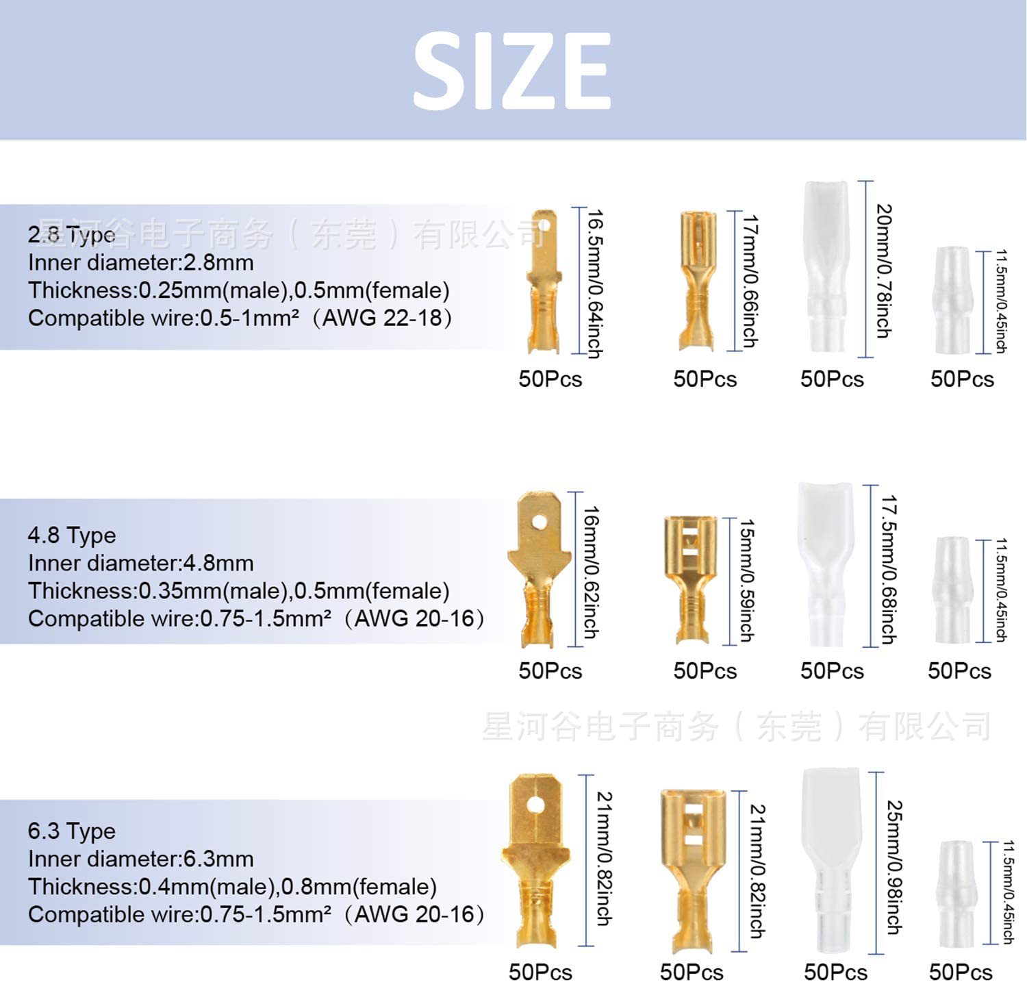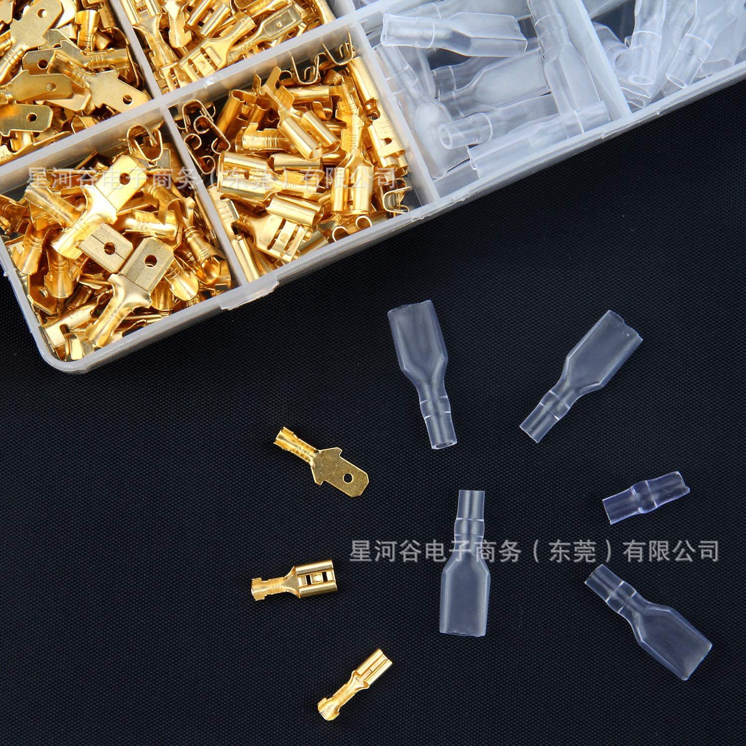 600pcs Boxed Spring Blade Terminal Copper Tinned Bare Terminal Spring Gold Withulation Protection