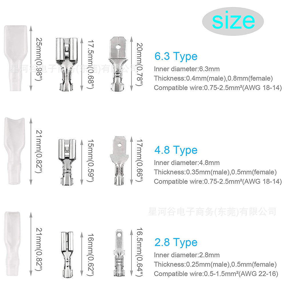 270pcs Boxed Spring Plug Terminal Copper Tinned Bare Terminal Spring Silver Withulating Sheath