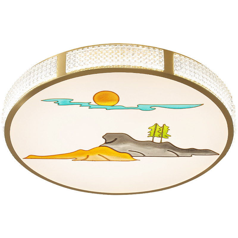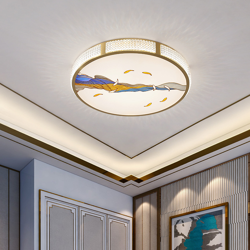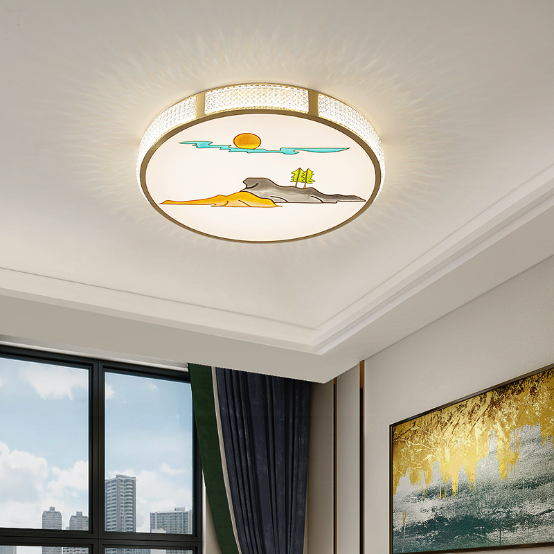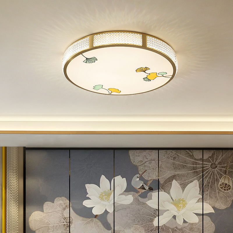 All Copper Minimalist Chinese Style Ceiling Lamp Bedroom Lamp Simple Modern Room Study Round Chinese Style Enamel Lantern