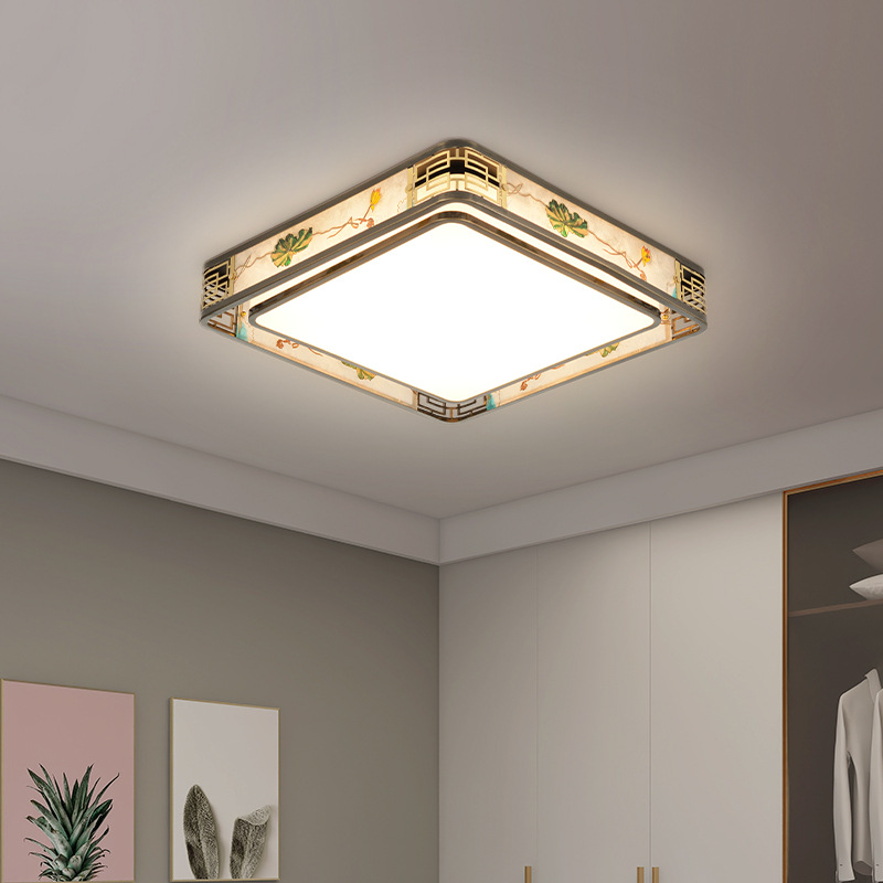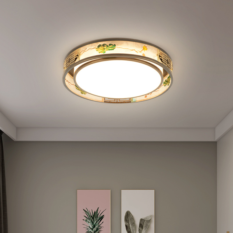 Minimalist All-copper Chinese-style Ceiling Lamp Round Enamel Living Room Chinese-style Zen Restaurant Bedroom Engineering Lamps