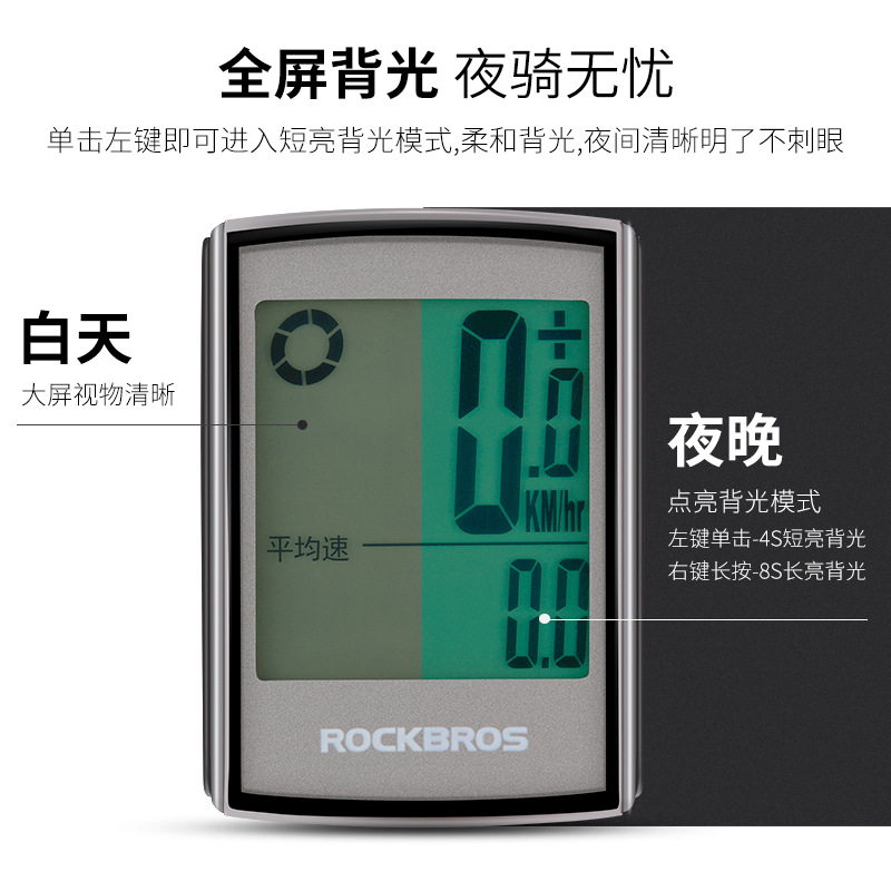 Rock Brothers Wireless Waterproof Bicycle Computer With English Large Screen Luminous Road Bike Speedometer For Riding
