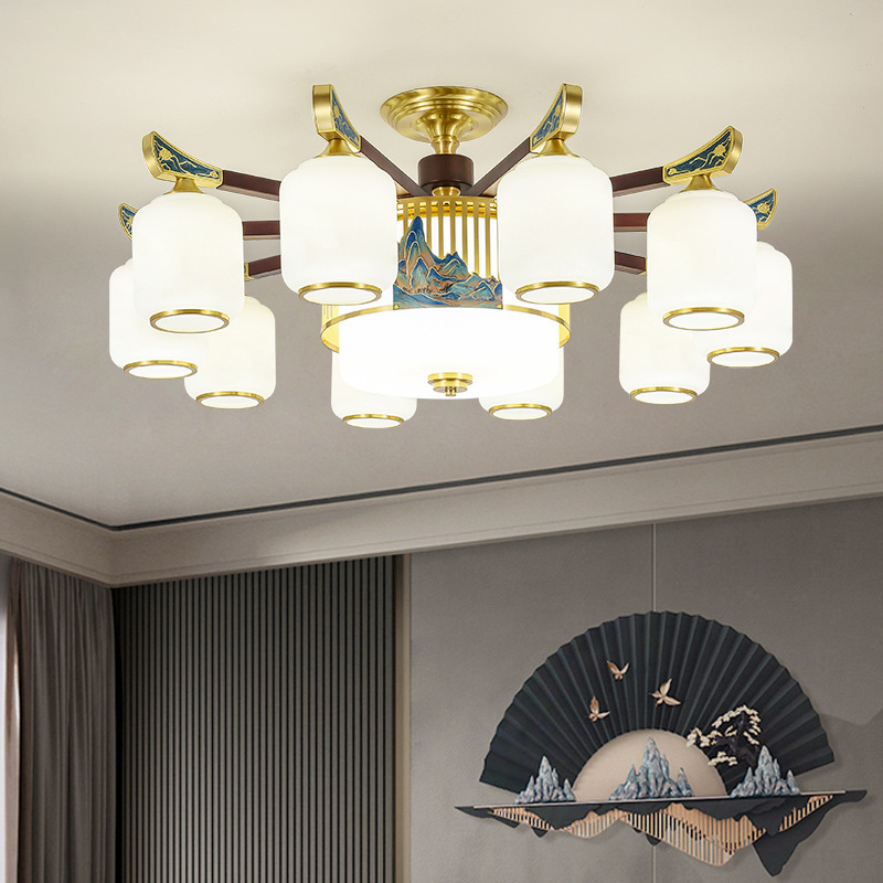 Chinese Style All-copper Ceiling Lamp,Living Room,Light Luxury Chandelier,Bedroom,Restaurant,Villa Sapele Wood Lamps,Whole House Package