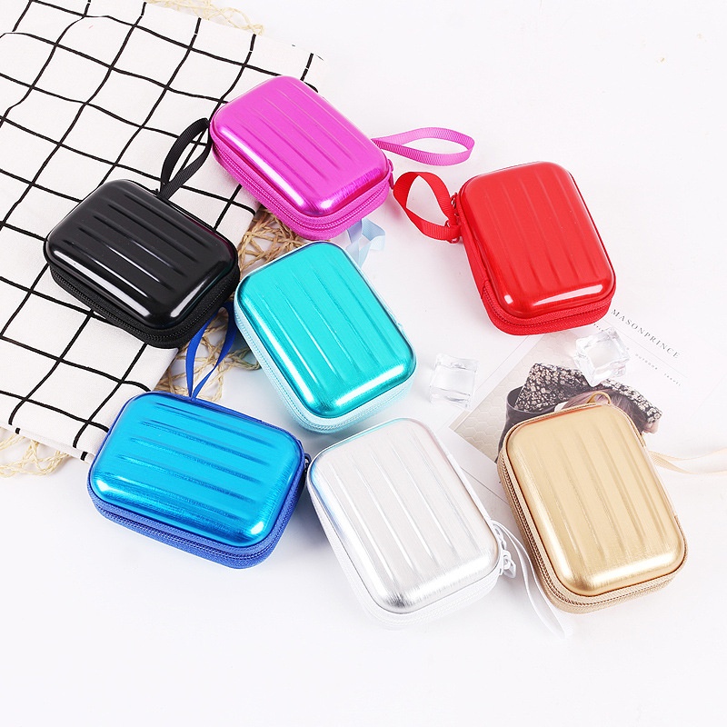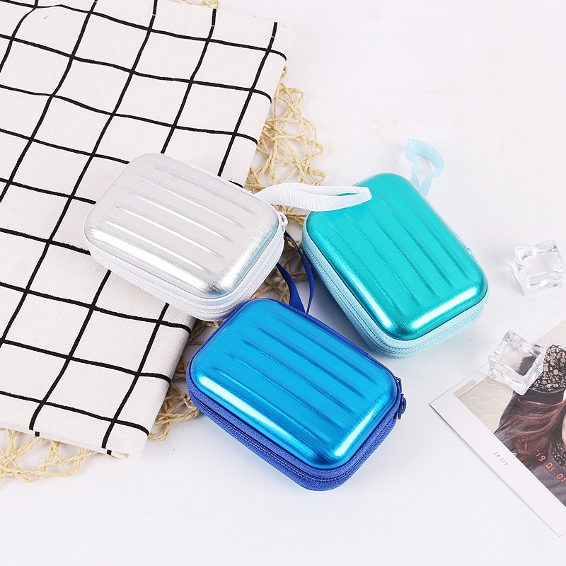 Creative Square Tinplate Coin Purse Mini Cartoon Zipper Data Cable Storage Bag Headphone Keychain Small Wallet