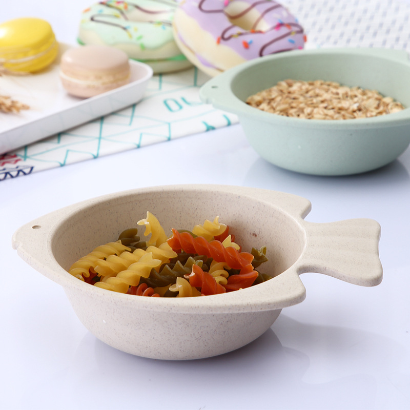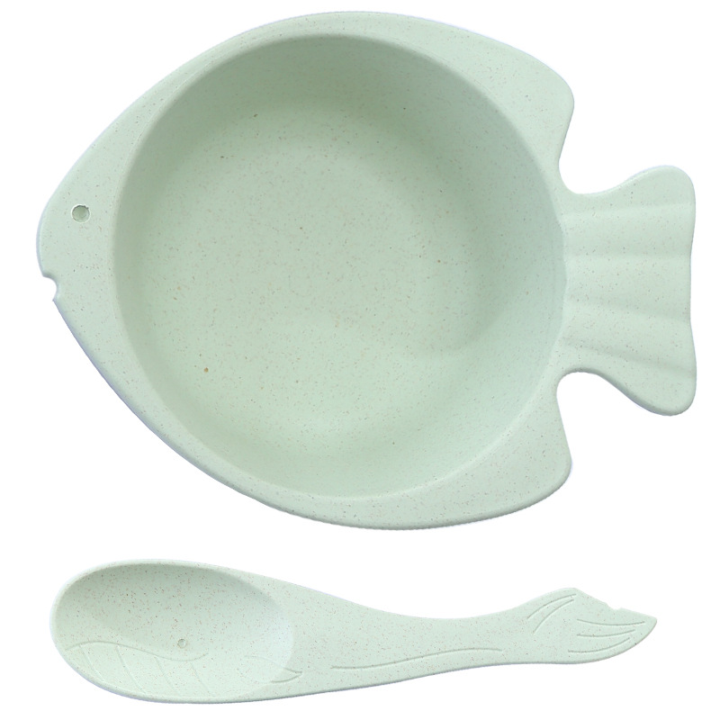 Wheat Straw Household Baby And Children Wheat Bowl Kindergarten Food Supplement Small Fish Spoon Fish Bowl Set Tableware Gift