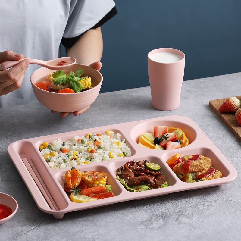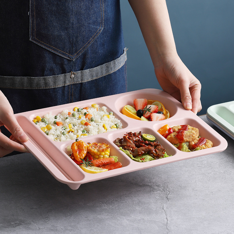 Wheat Straw Fast Food Plate Divided Student Anti-fall Household Tableware School Cafeteria Rice Tray