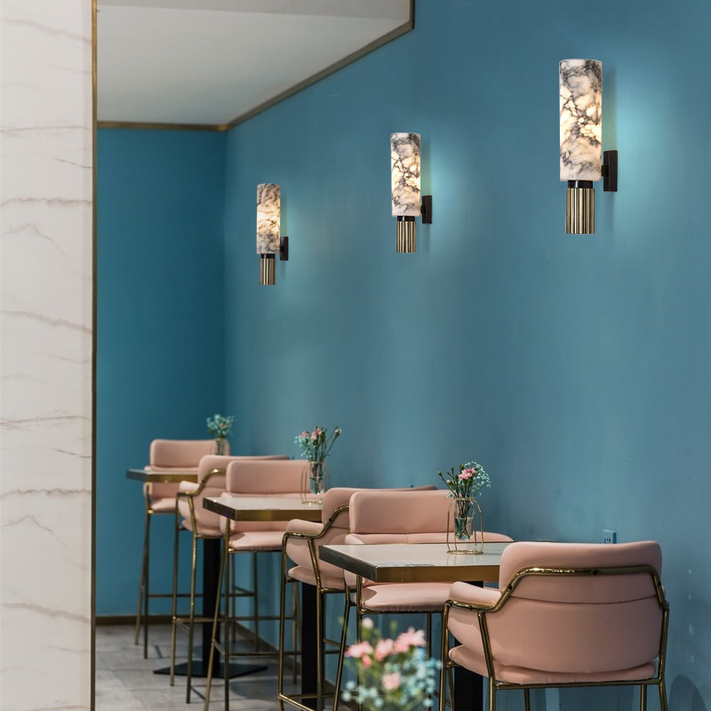 Modern Chinese Style Art Marble Wall Lamp Background Wall All Copper Light Luxury Simple Designer Bedside Wall Lamp