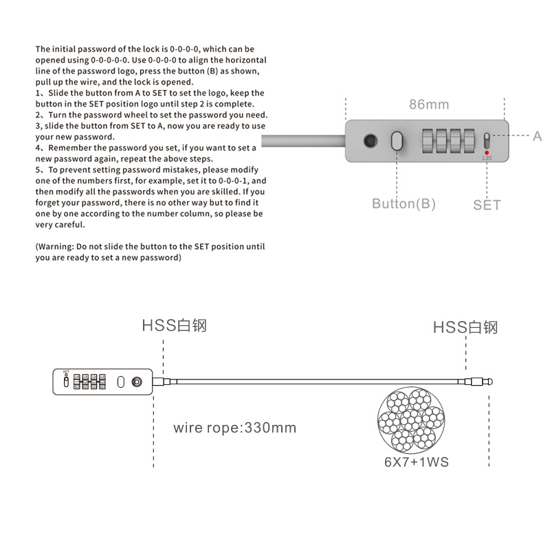 Practical Push Rod With Thicker Wire Diameter,Modified White Steel Lock,Bicycle Helmet Sliding Door Password Lock[904 T]