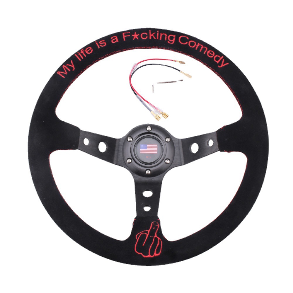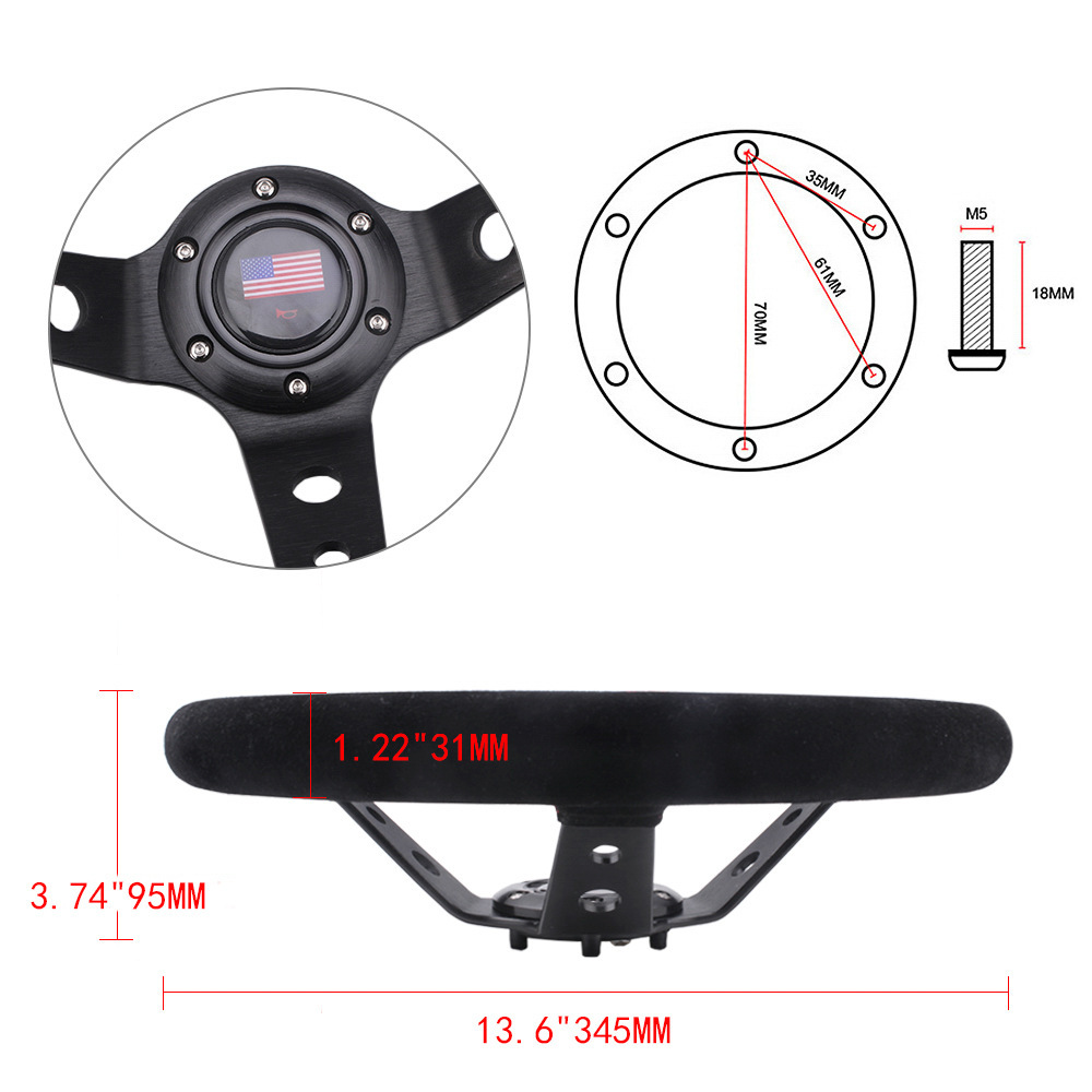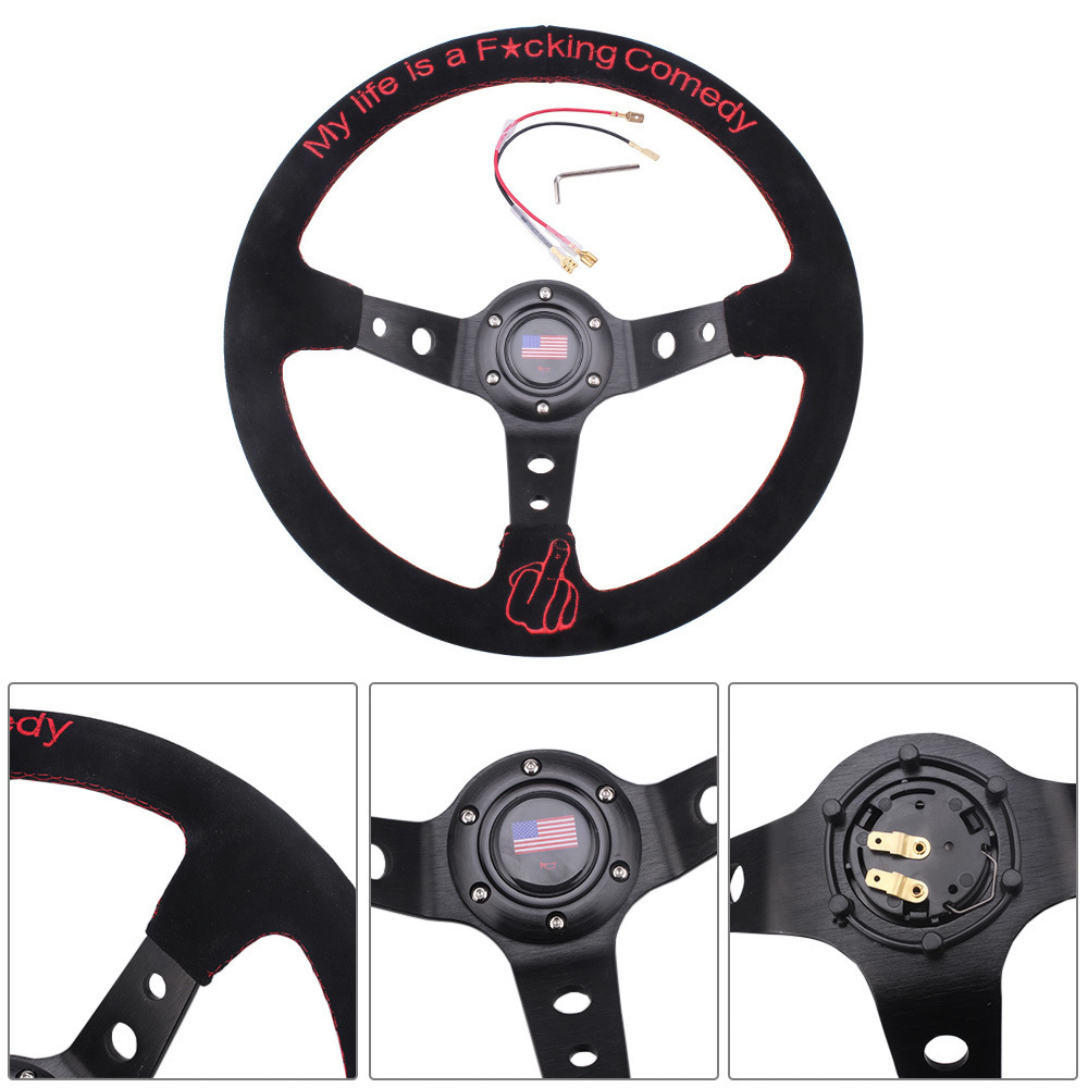 Car Modification Accessories14-inch Steering Wheel Suede Racing Racing Deep Plate Steering Wheel345mm