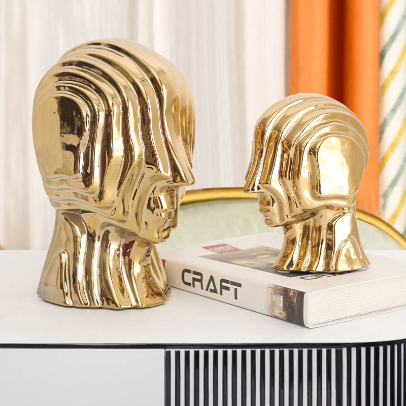 Nordic Living Room Entrance Ceramic Figure Sculpture Tabletop Ornaments Electroplated Abstract Home Decorations