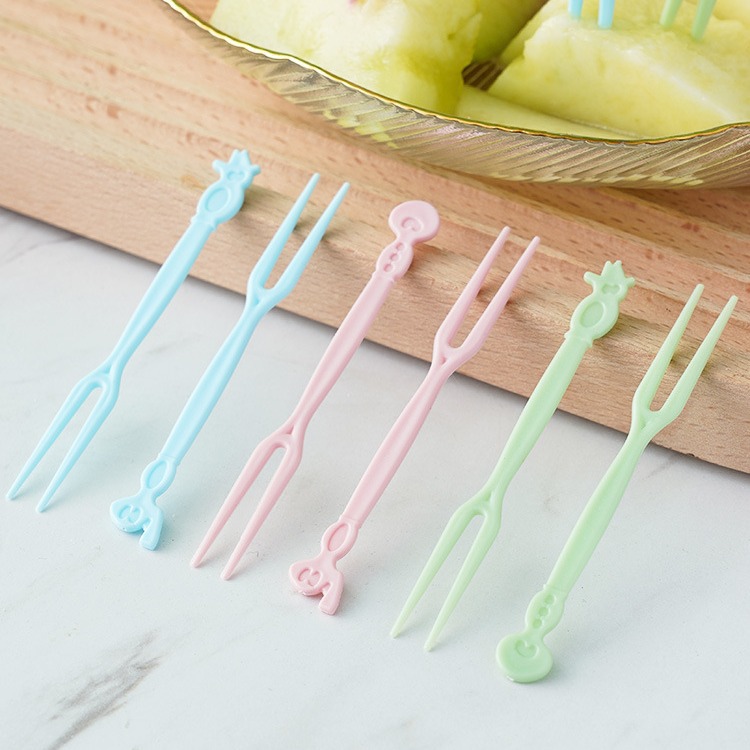 Barrel Fruit Fork Set Household Fruit Pick Disposable Plastic Two-tooth Fruit Dessert Cartoon Smiling Face Fork