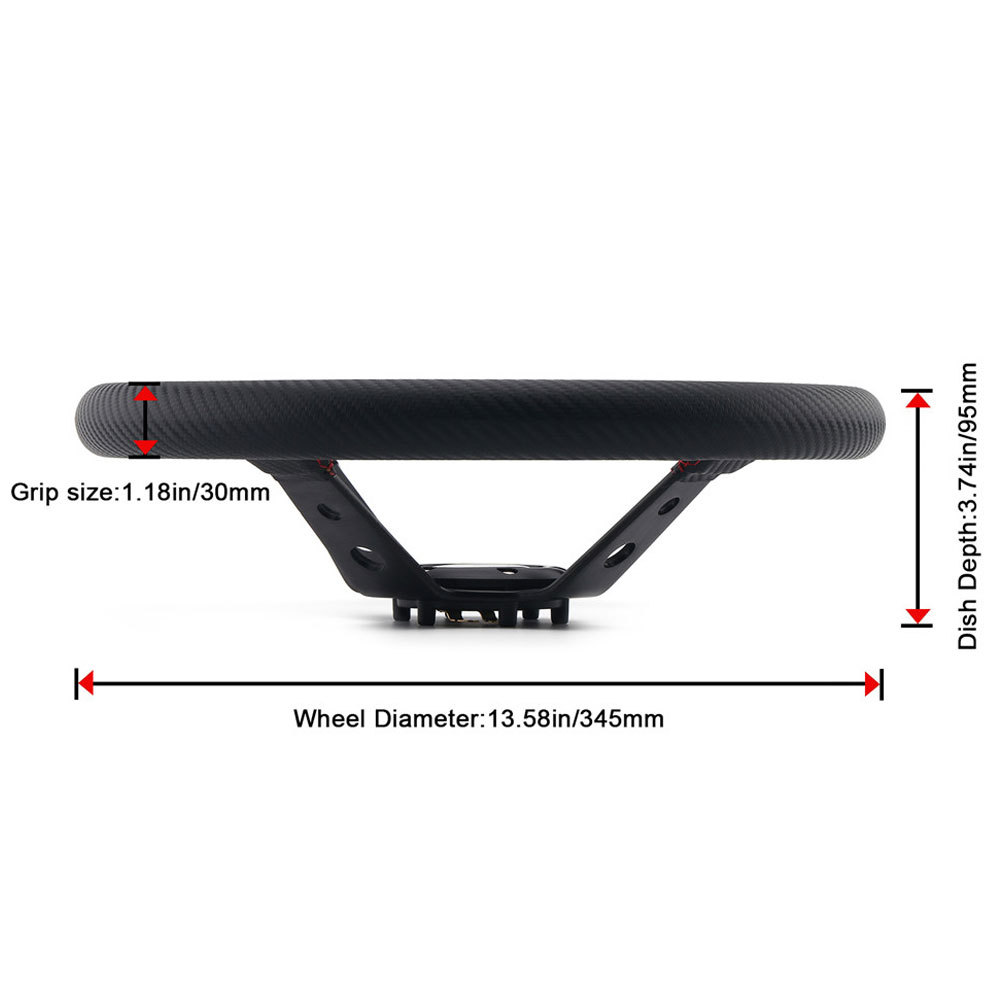 Car Modified Hand-stitched Racing Steering Wheel345mm Large Concave Deep Plate PUCarbon Pattern Competitive Game Steering Wheel
