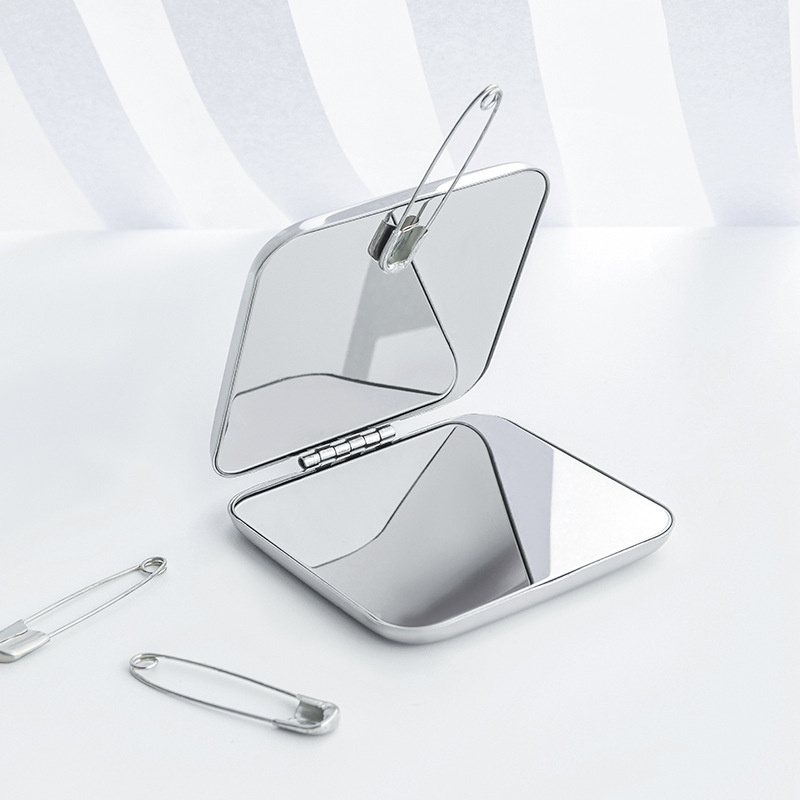 Style Small Mirror Female Portable Carry-on Folding Double-sided Stainless Steel Makeup Mirror Student Mini Makeup Mirror
