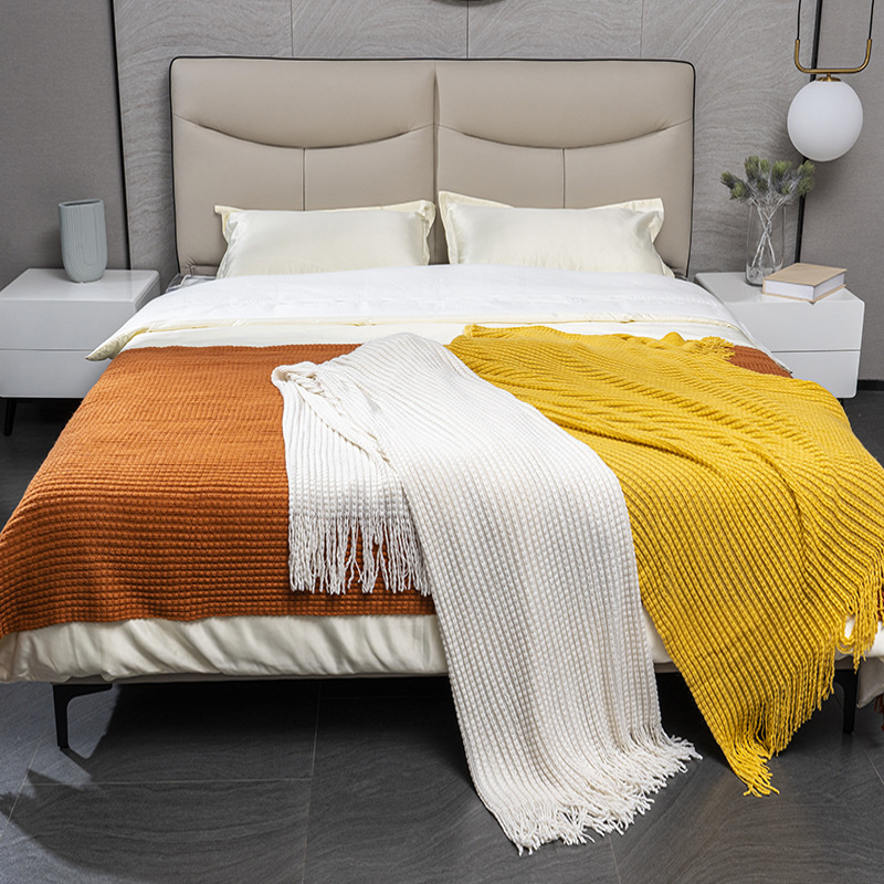 Bedside Blanket,Bedside Towel,Sofa Blanket,Knitted Bed Blanket,Bedside Blanket,Hotel Inn,Style Blanket,Beige