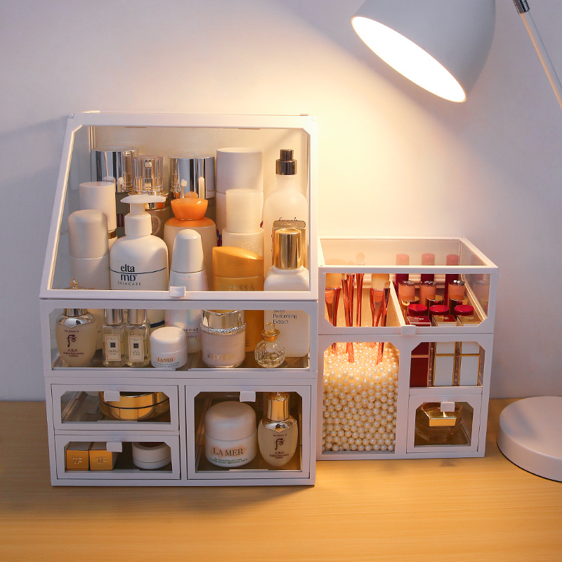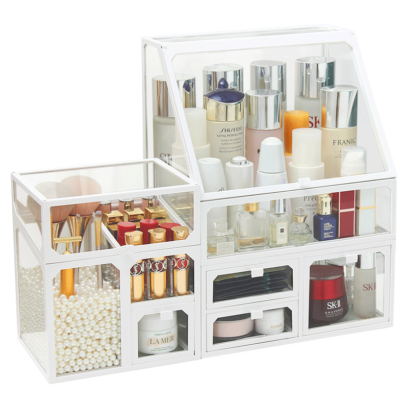 Transparent Cosmetic Storage Box Dust-proof Glass Desktop Skin Care Product Dressing Table Transparent Home Skin Care Product Storage Rack