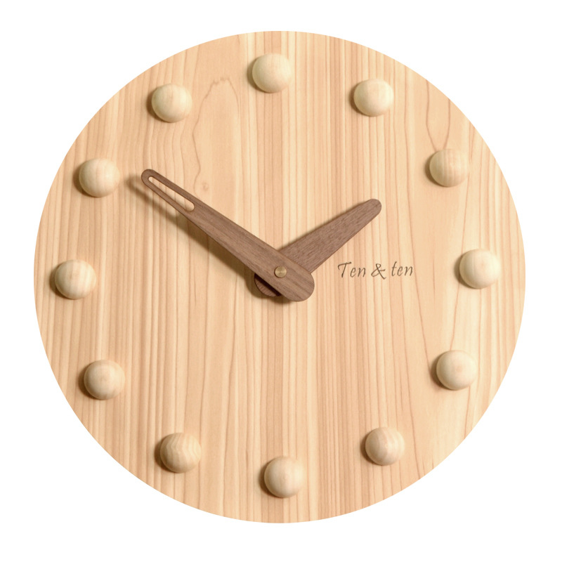 Creative Simple Quartz Clock No Punching Wooden Wall Clock Home Living Room Japanese Decorative Clock Clock