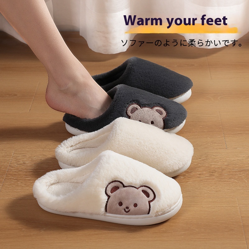 Cat-like Cotton Slippers For Women In Winter, Cute Home Plush Soft-soled Bear Couples Indoor Warm Home Cotton Slippers For Men