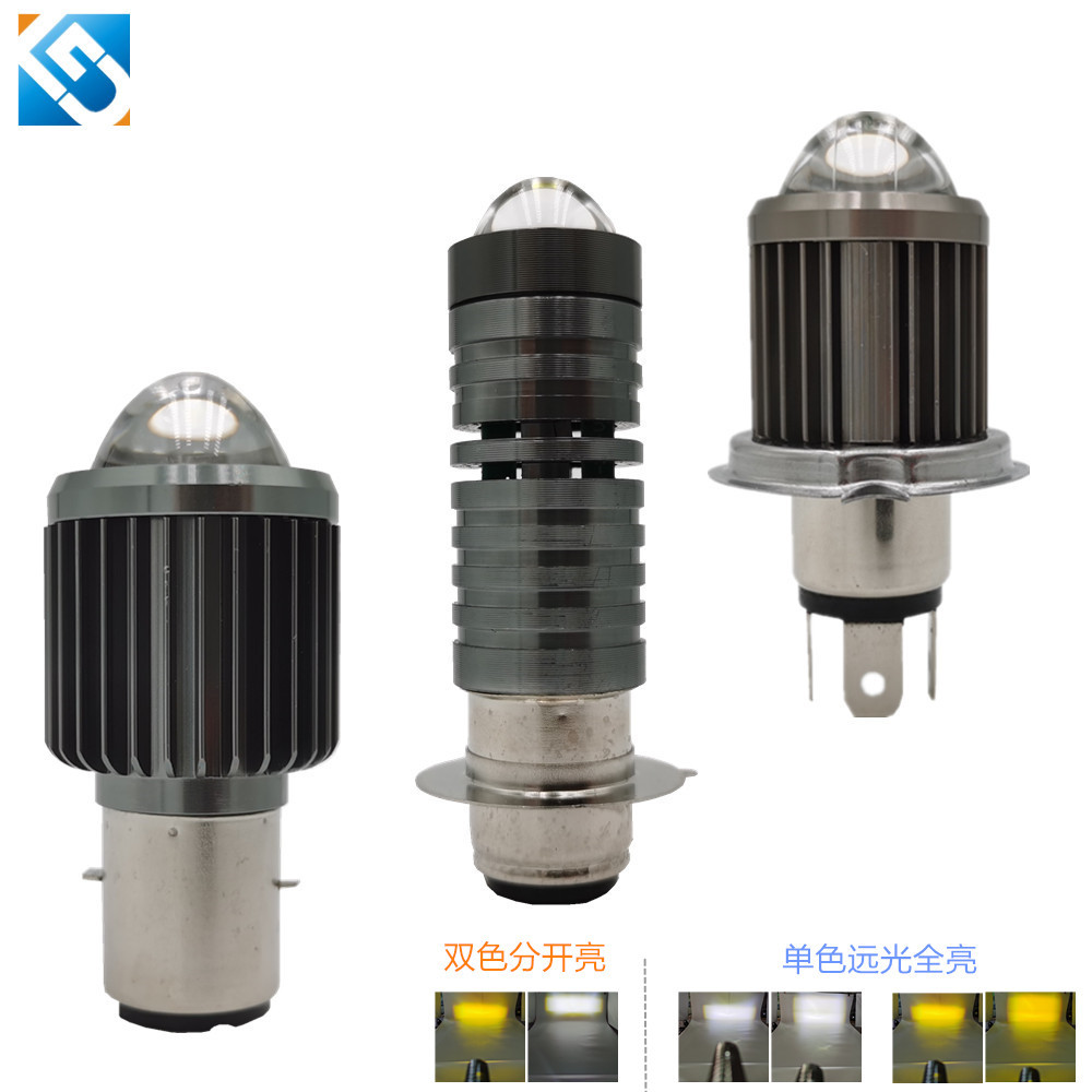 Motorcycle LEDHeadlight H6/p15d/h4 Single Double Three-claw Yellow And White Double Color High And Low Beam Headlight With Fan