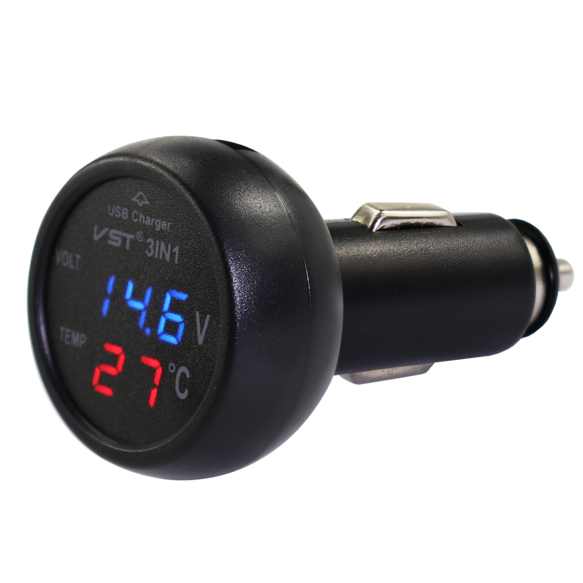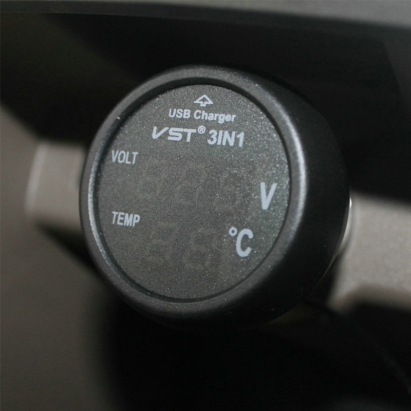 Car Electronic Voltage Thermometer Car Charger Three-in-one Fast Charging Plug-in Car Charger