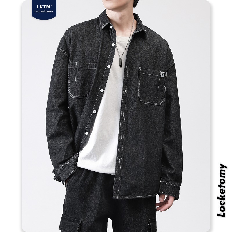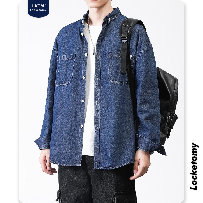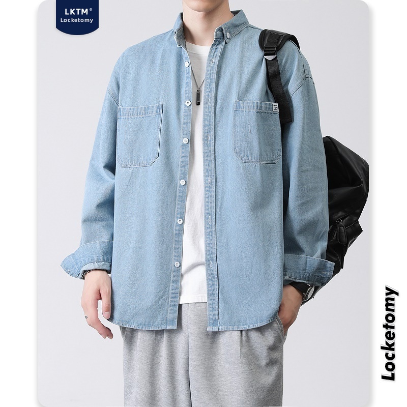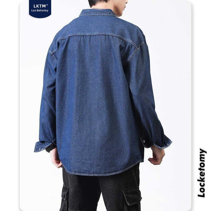 L K T M Men's# Shirt Men's Autumn And Winter Washed Loose Denim Korean Styley Long- Sleeved Shirt Work Jacket