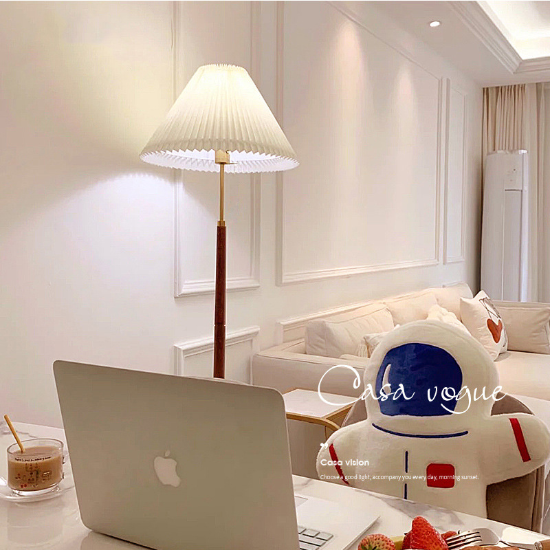 Nordic Retro Nostalgic Style Girl's Bedroom Pleated Floor Lamp Living Room Study Simple Bedside Lamp