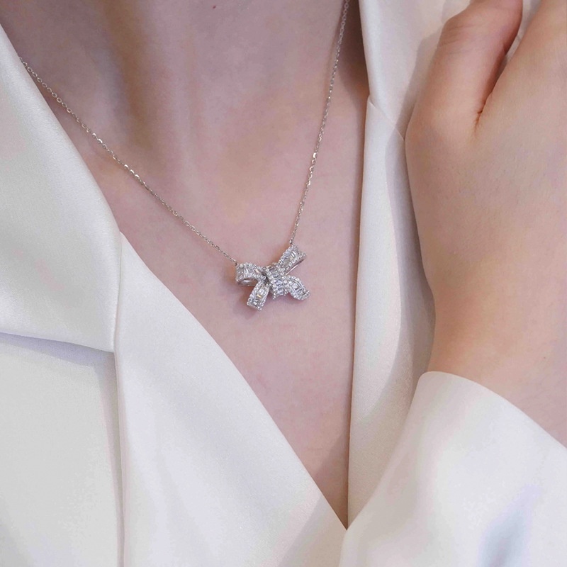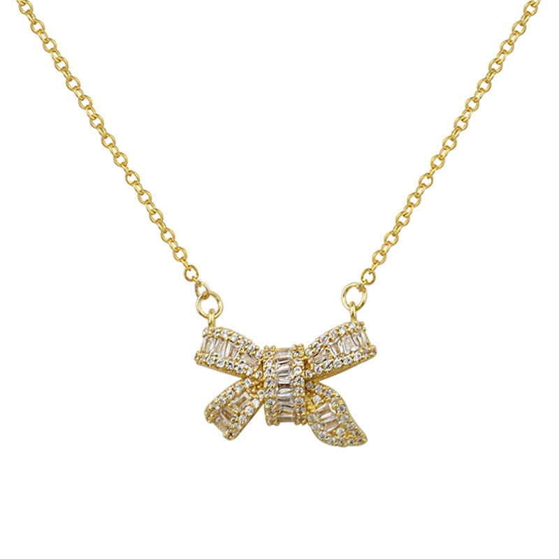 Fashion Small Fragrance Studded With Diamonds Light Luxury Girl Super Fairy Bow Necklace Female Temperament Elegant Clavicle Chain Female