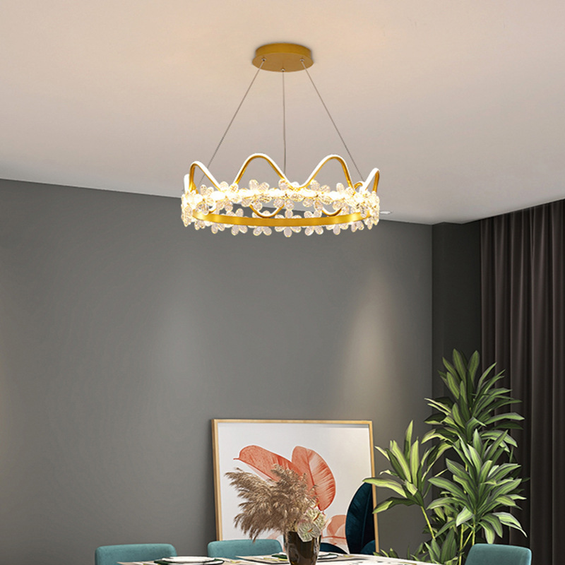 Bedroom Lamp Internet Celebrity Nordic Modern Simple Light Luxury Restaurant Bedroom Creative Personality Crown Crystal Chandelier