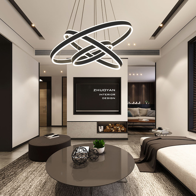 Nordic Modern Simple Ring Light Bar Creative Personality Chandelier Restaurant Hotel LEDRing Light Living Room Headlight