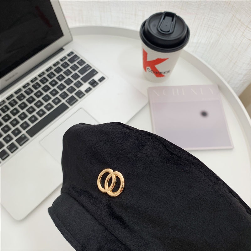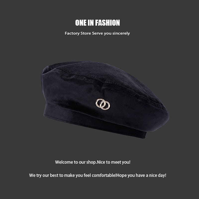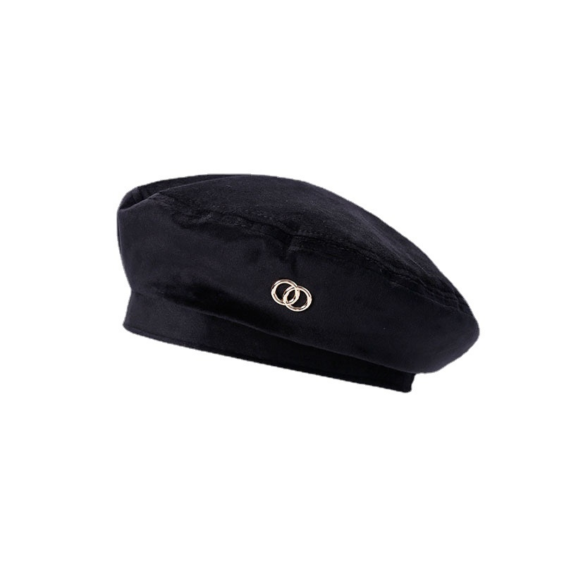 Juejuezi~ Black Velvet Thin Style Oni Super Love Beret For Women Spring And Autumn Japanese Fashion Painter Hat For Men
