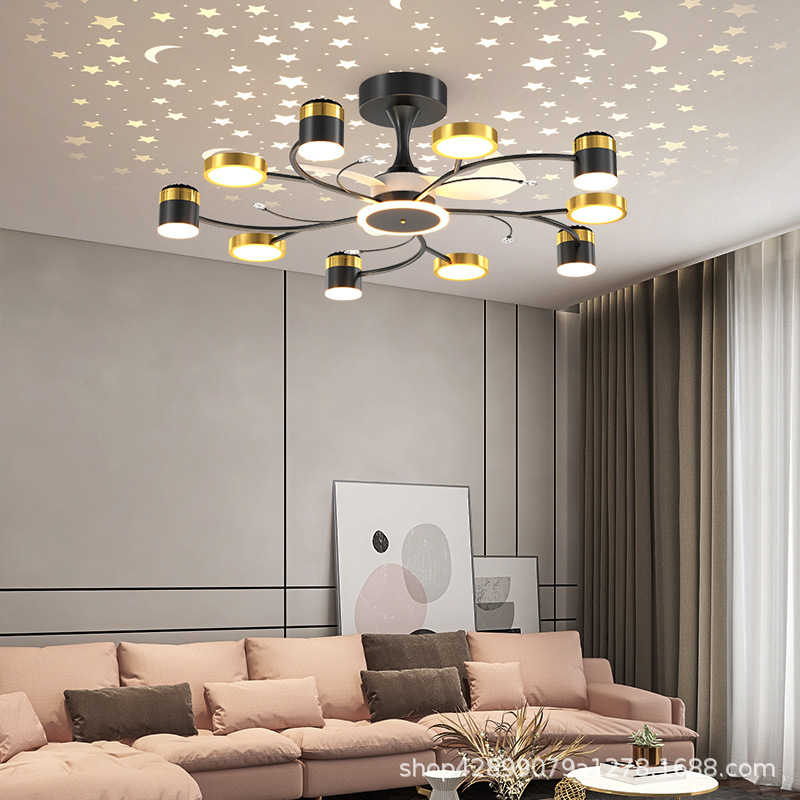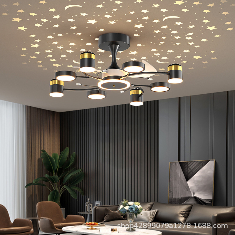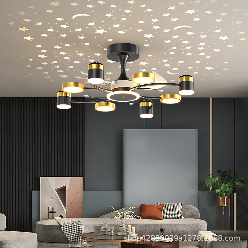 Star Ceiling Living Room Fan Lamp Creative Internet Celebrity Nordic Fan Chandelier Star Sky Projection Living Room Dining Room Ceiling Fan Lamp