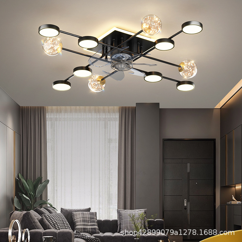 Internet Celebrity Starry Sky Ceiling Fan Lamp Nordic Light Luxury Living Room Bedroom Study Dining Room Lamp Integrated Fan Lamp